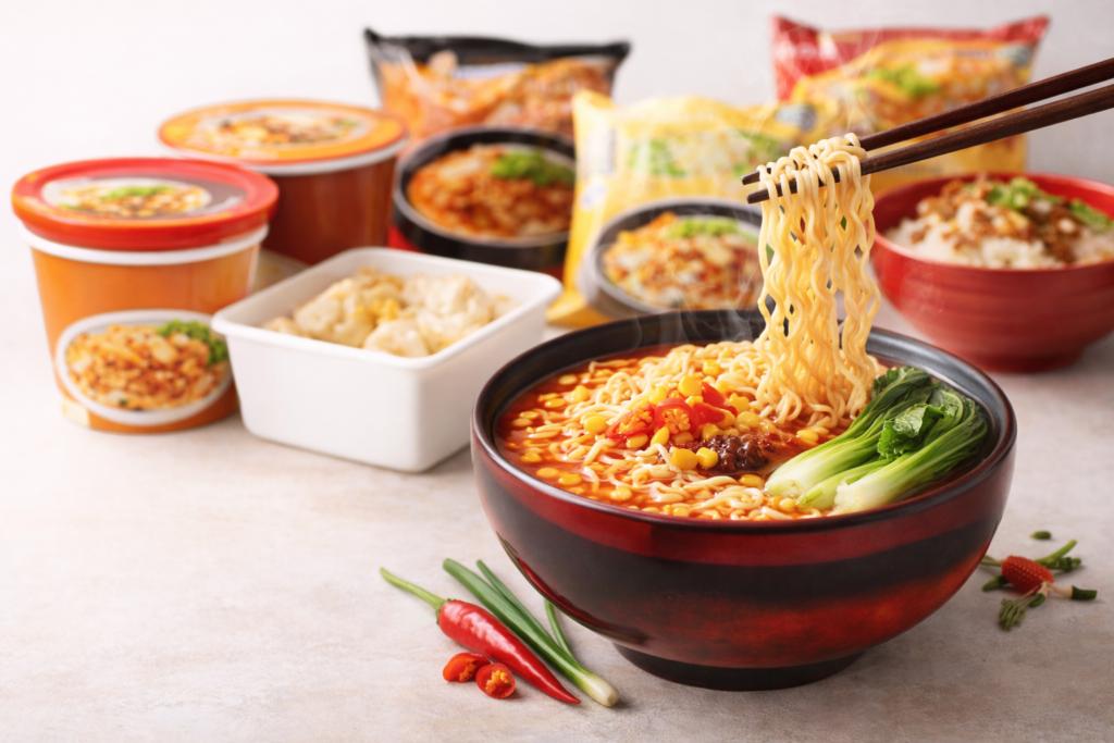 Instant noodles, self-heating meals and ready-to-eat foods.